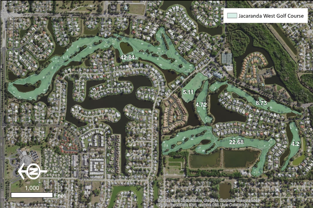 Figure 1.2.2. Estimated irrigated acreages for Jacaranda West Golf Course.