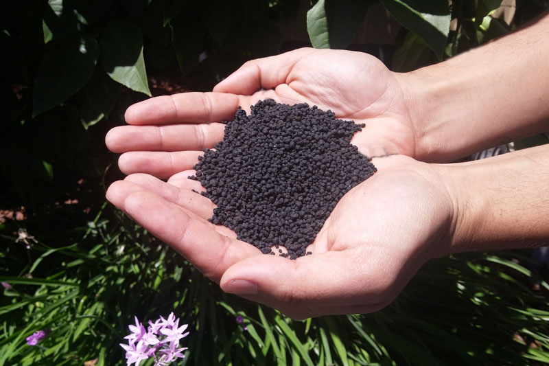 Class AA compost pellets processed from dried biosolids and landscape waste at the Synagro facility. Source: Synagro