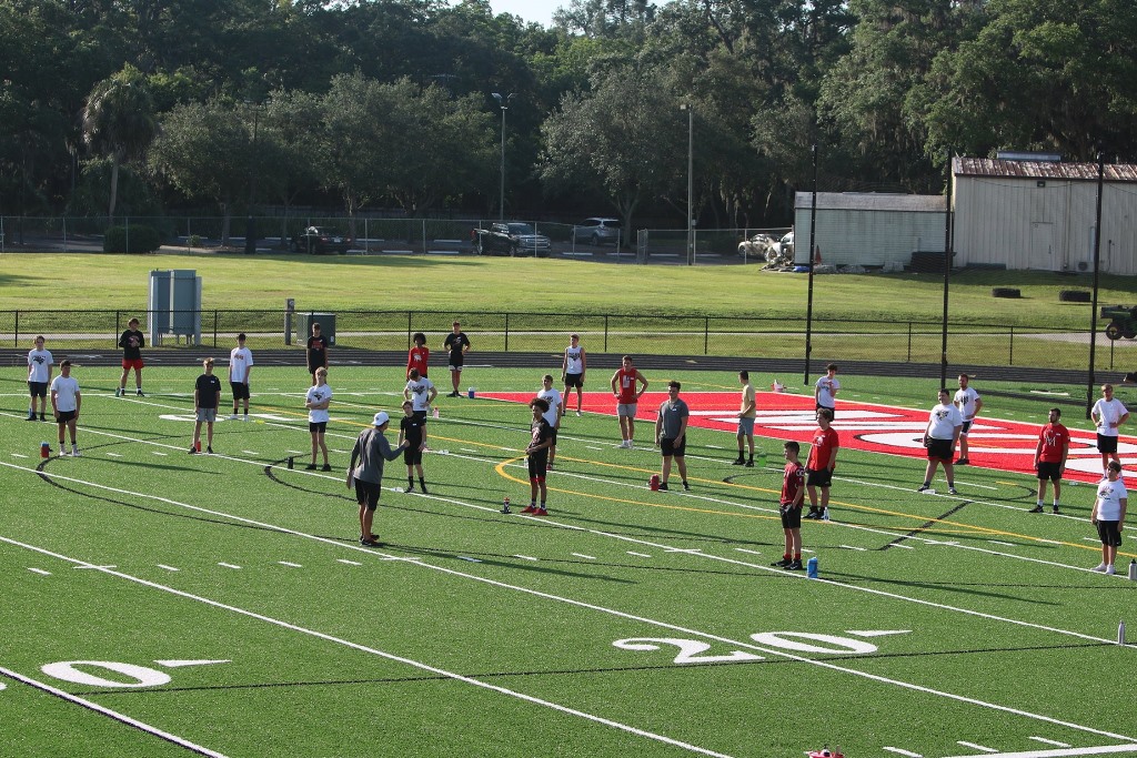 Conversion of athletic fields to artificial turf eliminates the need for fertilizer, irrigation, and mowing, while improving athlete safety and field reliability. Cardinal Mooney High School converted its multi-sport athletic field to artificial turf in 2019, followed by Riverview High School in 2020. Remaining public schools in Sarasota County are expected to complete conversions by 2025. Proper under-field drainage and stormwater treatment should be incorporated into turf field design.