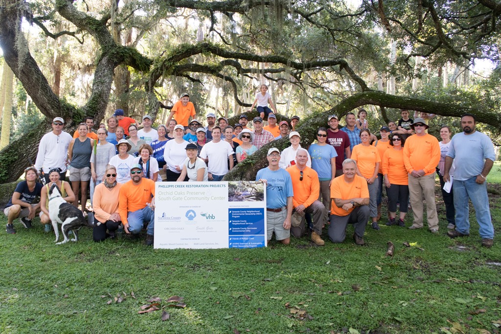 Volunteers and staff from Sarasota County, Sarasota Bay Estuary Program, VHB, and Orchid Oaks Condominium restored the Phillippi Creek shoreline. Source: Sarasota County Government